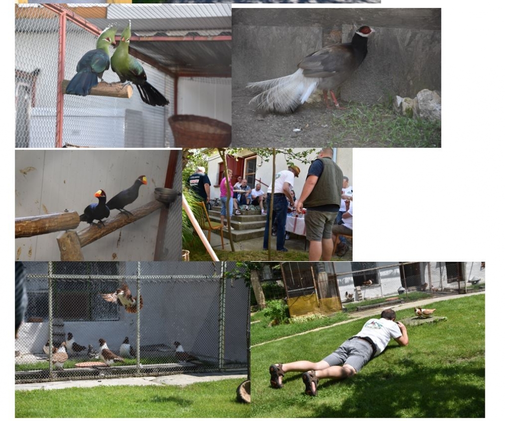 Im Uhrzeigersinn kann der Besucher die einzelnen Szenen mit den dazu passenden Toneffekten beobachten, wobei die wichtigsten Episoden mit Lichtstrahlen beleuchtet werden.) - in aller Ruhe betrachten, bevor es auch schon weiterging. Wir fuhren nach Tiszaalpar, wo wir von Züchter Janos Kanalas zum Mittagessen ( 14.00 Uhr) – Gulasch mit Pilzen – erwartet wurden. Zusätzlich wurden wir noch mit vielen leckeren Kuchen überrascht. Nach dem Essen konnten wir dann auch endlich seine Tauben ( Felegyhazaer- Tümmler) bewundern. Nachdem wir uns dann über Mondain Tauben informiert hatten und nochmals einen Fely - Züchter besuchten, kam am Abend in Kecskemet für einige von uns ein ganz besonderes Highlight, es waren zu bewundern: Fasane, Tragopane, Turakos, Ziertauben und verschieden Arten von Perlhühnern. Nach dem ausgiebigen bewundern dieser schönen Tiere machten wir uns dann auf den Rückweg nach Vokany zu Istvan Eibel, wo wir gegen 23:00 Uhr ankamen. Seine Frau Eva erwartete uns zum einem Abendessen. Nach dem Essen brachte uns Johann dann satt und müde in unsere Unterkunft, so gegen 1:00 Uhr, wo an diesem Tag und Abend eine Hochzeit gefeiert wurde. Einige von uns feierten noch etwas mit, so bis ca. 3:00 Uhr morgens, die anderen fielen müde ins Bett.
