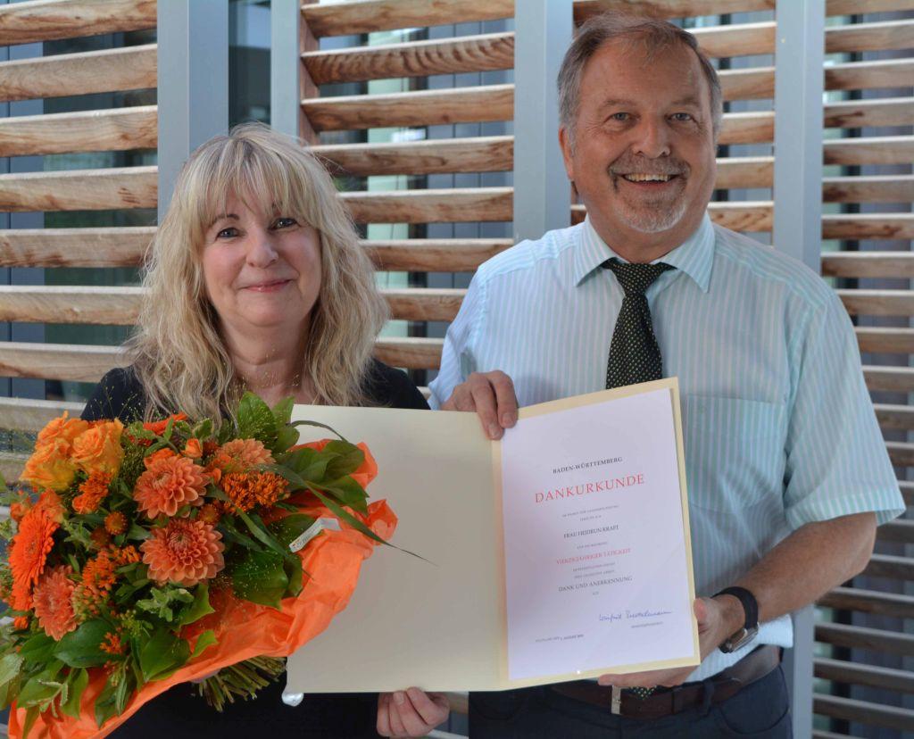Im Rahmen einer kleinen Feier, die sich der offiziellen Ehrung anschloss, bedankte sich Heidrun Kraft herzlich für die Glückwünsche und die große Anerkennung, die sie für ihre Tätigkeit erhalten hat.