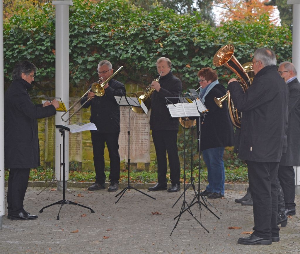 Die feierliche musikalische Umrahmung der Gedenkfeier gestaltete der Musikverein Stadtkapelle unter der Leitung von Roland Ströhm. Im Gedenken an die Kriegsopfer legten der Oberbürgermeister und Karl Heinz Wacht Kränze auf dem Friedhof Süd und im Anschluss auf dem Friedhof Nord und in Krummwälden Kränze nieder.