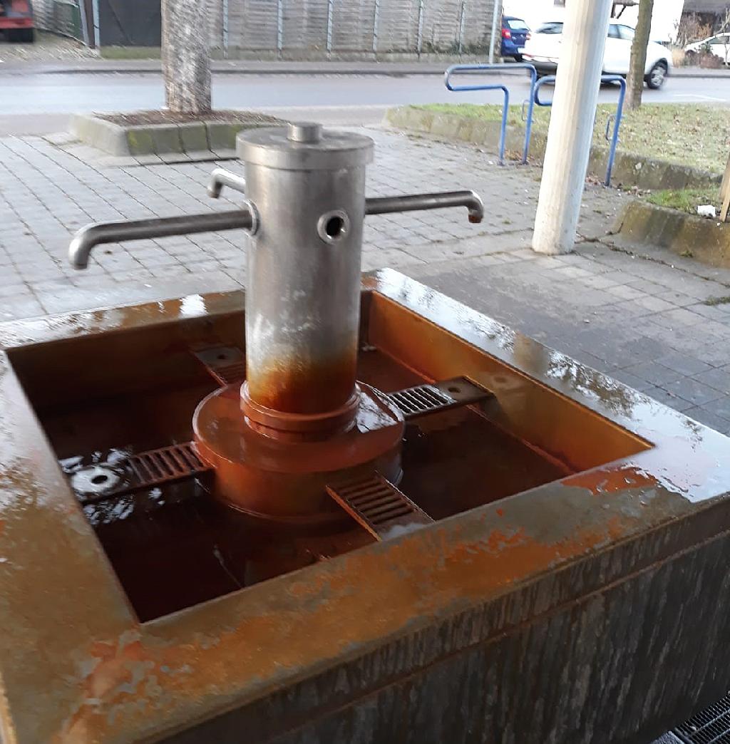 Durch die Sachbeschädigung wurde eines der vier Auslaufrohre aus der Verankerung gerissen. Der Brunnen musste deshalb kurzfristig stillgelegt werden, da durch das circa 3 cm große Loch in der Entnahmestelle Fremdkörper oder Bakterien in die Brunnentiefe gelangen können. Ein Fachbetrieb ist bereits mit der Reparatur des Auslaufs beauftragt. Im Anschluss an die Montagearbeiten wird das Sauerwasser durch ein mikrobiologisches Institut aus Tübingen beprobt. Sobald die Laborergebnisse biologisch einwandfrei sind, kann die Entnahmestelle voraussichtlich Mitte Februar wieder in Betrieb gehen. Wer bis dahin auf frisches Sauerwasser nicht verzichten möchte, dem bietet sich eine weitere Entnahmestelle in der Talstraße beim Uhlandbrunnen.