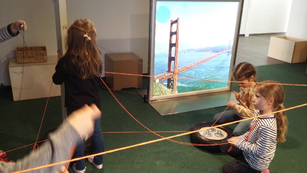 Beim Thema des Museums: „Architektierisch“ drehte sich alles um die Architektur von Mensch und Tier. Zunächst wurden uns die verschiedenen aufgebauten Installationen gezeigt und erklärt, wie diese funktionieren. Alle Kinder wurden miteinbezogen und probierten die verschiedensten Stationen aus.