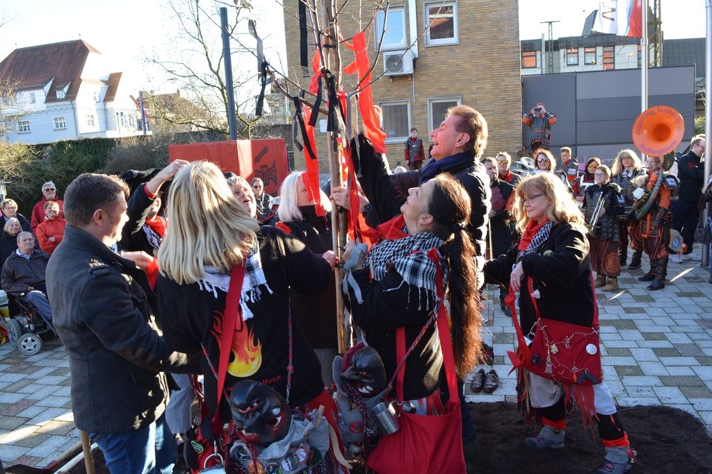 Wer mit Bäume pflanzen sein Klima-Gewissen beruhigen will, hatte am Schmotzigen Donnerstag in Eislingen gute Karten. Frei nach dem Titel des Bestsellers „So laßt uns denn ein Apfelbäumchen pflanzen..“ hatte eine stattliche Abordnung der Brandstifter Hexa zum Auftakt der 5. Jahreszeit eine Baumpflanzaktion auf dem Schlossplatz initiiert.