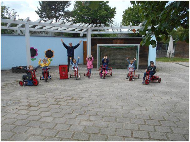 Ein kleiner Wermutstopfen besteht darin, dass wegen der Coronakrise derzeit nur die Kinder der Notgruppenbetreuung die Fahrzeuge nutzen können. Mit Spannung erwarten wir hoffentlich bald alle Kinder wieder zurück, um zu erleben, wie sie mit strahlenden Gesichtern in unserem Garten herumflitzen.