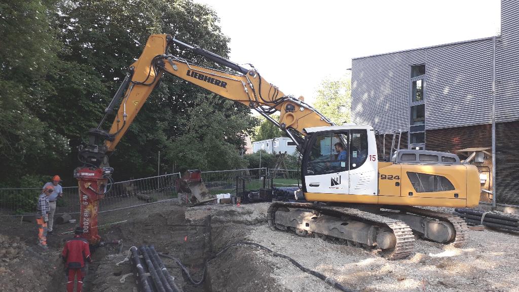 Die Vorplanungen und Ausschreibungen, sowie die Vergabe der Arbeiten sind bereits im letzten Jahr erfolgt – jetzt geht es an die Umsetzung der Baumaßnahme. „Der Baustart verzögerte sich aufgrund der aktuell vorherrschenden COVID-19-Situation. Das benötigte Material kommt aus dem europäischen Ausland und es kam hier zu Lieferengpässen“, soChristoph Braun, Leiter des Eislinger Hochbauamts. Vergangene Woche konnte jetzt mit den Erd- und Aushubarbeiten für den zweigeschossigen Erweiterungsbau des Kinderhauses „Am Ziegelbach“ begonnen werden. Diese Woche rollten die Spezialbohrgeräte für die Tiefgründung des Kindergartens im EislingerNorden an. Der Erweiterungsbau ruht auf insgesamt 23 Pfählen, die teilweise bis zu sechs Meter in den Untergrund einbinden. Die anstehenden Kanal- und Entwässerungsarbeiten, sowie dieFundament- und Betonarbeiten für die Bodenplatte des Kinderhauses „Am Ziegelbach“ werden rund sechs Wochen andauern.Danach wird das vorkonfektionierte Gebäude als Holzrahmenbau erstellt,so dass der Holzbau bis zum Sommer 2020 errichtet sein wird. Unmittelbar im Anschluss kann mit den Ausbau- und Haustechnikgewerken im Innenbereichauf einer Gesamtfläche von rund 355m² begonnen werden. Die Erweiterung umfasst zwei Gruppenräume mit den dazugehörigen Nebenräumen, Personalraum, Verteilerküche, sowie Sozial- und Technikraum. Der Gruppenraum im 1.OG erhält zudem eine Galerie, derfür die Kinder als weiterer Aufenthalts- und Spielbereich angedacht ist. Die Arbeitenwerden voraussichtlichzum Jahreswechselabgeschlossen sein, so dass im 1. Quartal 2021die Kinder in ihr neues Domizil umziehen können.Die Fassade desErweiterungsbaus des Kinderhauses in der Ziegelbachklinge wurde als vorgehängte Fassade mit großformatigen Fassadenplatten konzipiert – im Kontrast dazu die Holz-Aluminium-Fenster und Türelemente, die in den Innenbereich überleiten, der von Holz und freundlichen, warmen Farbtönen bestimmt wird. Der gesamte Kindergarten wird auch weiterhin barrierefrei sein, dies ermöglicht der Aufzug im bestehenden Kinderhaus.Das Gebäude wird nach dem aktuellen Energiestandard der EnEV gebaut, eine Luft-Wärmepumpe sorgt für Wärme im Kindergarten. Das Schrägdach wird extensiv begrünt.Die gesamte Baumaßnahme ist mit rund 1,3 Millionen Euro veranschlagt.