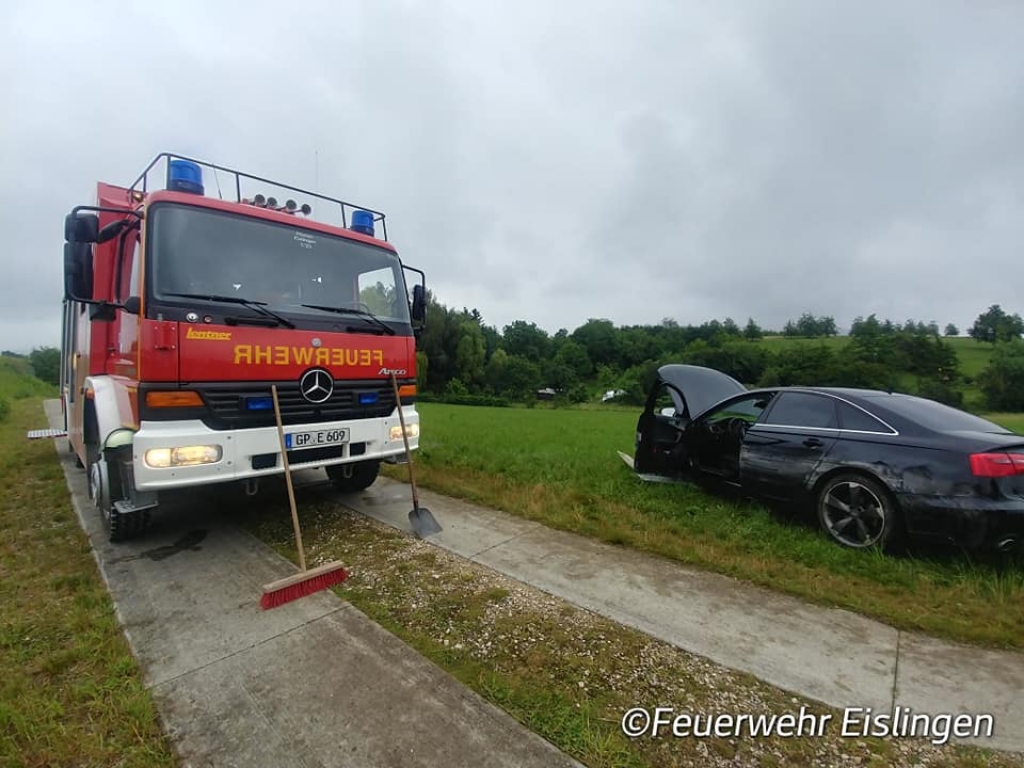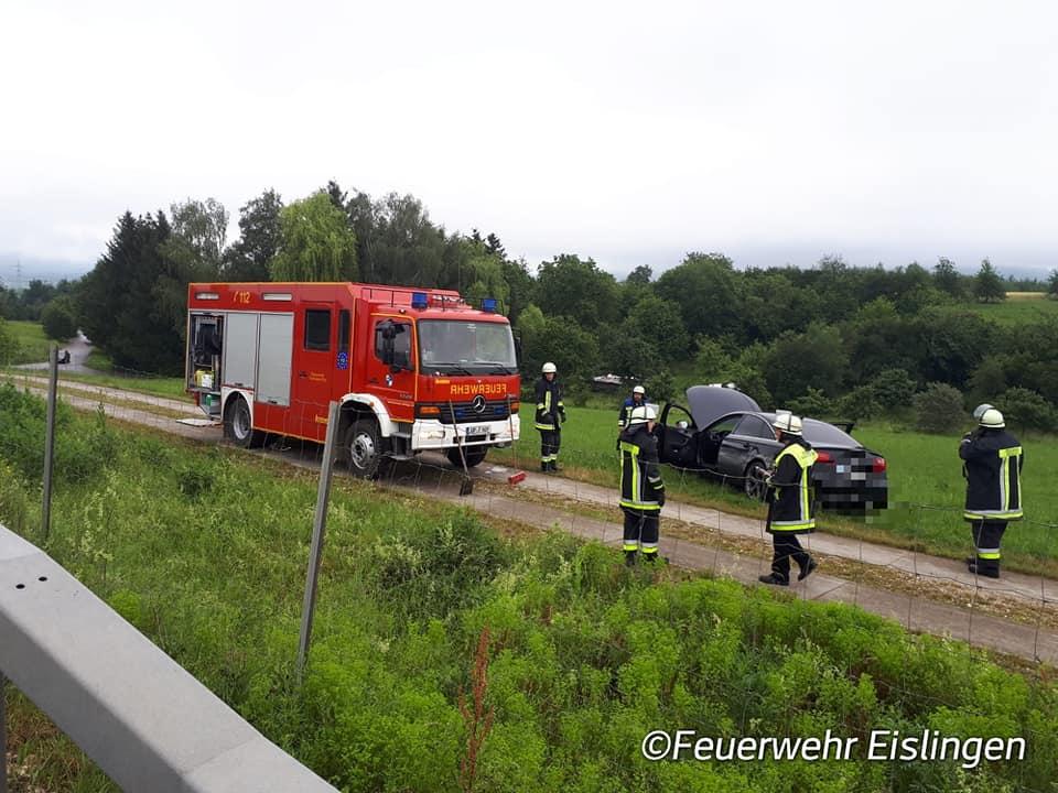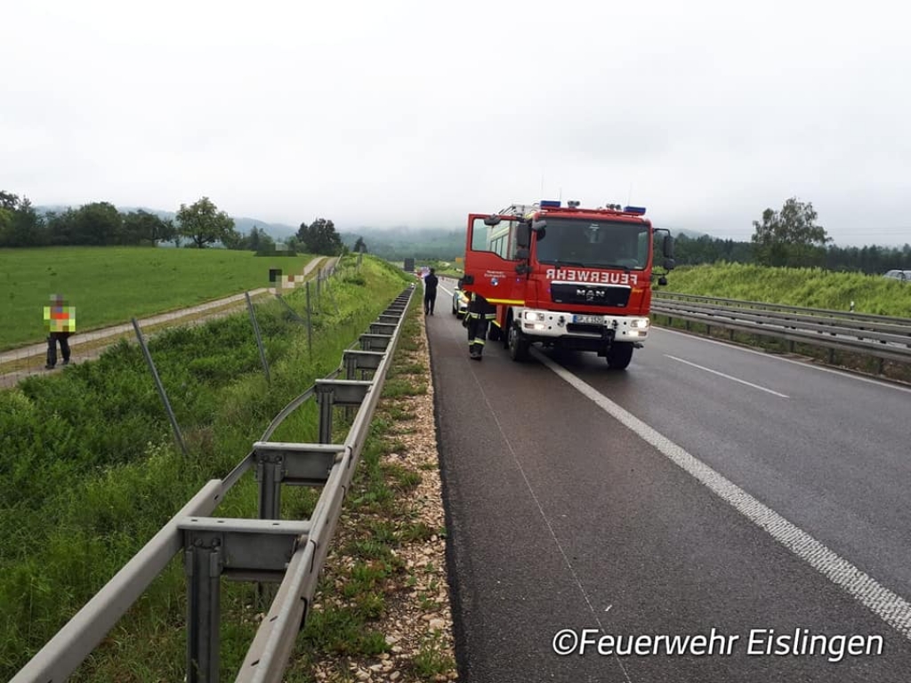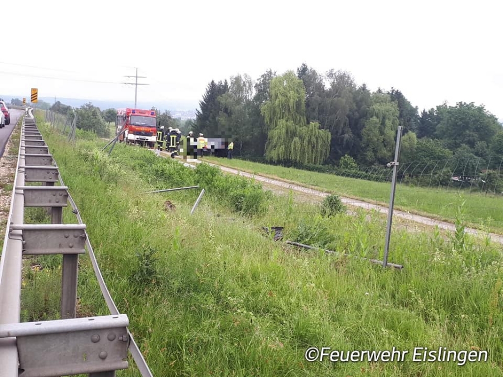 Eine Person kam mit Ihrem Pkw aufgrund gesundheitlicher Probleme auf der B10 vor der Ausfahrt Eislingen-Ost/ Salach von der Fahrbahn ab, durchbrach einen Schutzzaun und blieb anschließend auf einer Wiese stehen. Glücklicherweise war die Person entgegen den ersten Meldungen nicht im Fahrzeug eingeklemmt. Die Einsatzstelle wurde abgesichert, auslaufende Betriebsstoffe aufgenommen und der Abschleppdienst bei der Bergung unterstützt.