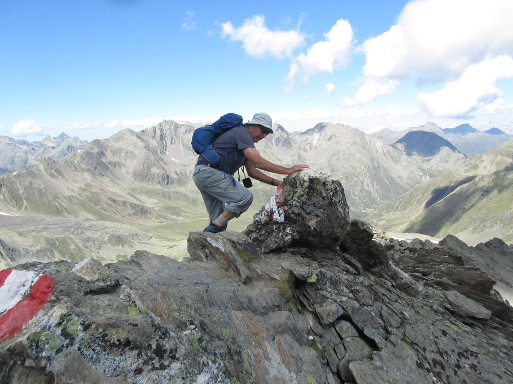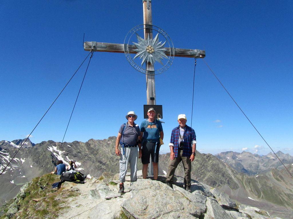 Von St. Sigmund (1513 m ü.N.N.) führte der Zustieg zur Pforzheimer Hütte (2308) durch das naturbelassene Gleirschertal. Vorbei an schönen Almwiesen und Gebirgsbächen wurde das Standquartier erreicht. Anderntags wanderte man auf einem Teilstück der Sellrainer Hüttenrunde zur 3005 Meter hohen Zischgelesspitze. Ein schmaler Pfad hinab ins Gleirschertal, später in steilen Serpentinen, landschaftlich großartig, unschwierig ins hochalpine Gelände. Der knackige Aufstieg am ausgesetzten felsigen Nordgrat im II-er Gelände erforderte Trittsicher- und Schwindelfreiheit. Der Lohn war ein grandioses 360 Grad Panoarama bei traumhaften Wetter. Fünfundziebzig Minuten –fast eine Ewigkeit- genoß man in vollen Zügen das Gipfelglück auf dem Dreitausender. Einfach herrlich. Vorsicht war beim Abstieg im losen Geröll und den felsigen Blockfeldern geboten, ehe es analog dem Aufstieg unschwierig zur Pforzheimer Hütte ging. Abschied am anderen Morgen, mit der Überschreitung vom Gleirschtal ins Lüsental nach Praxmar. Anfangs derselbe Weg wie am Vortag. Es folgte der steile, kräftezerrenden Aufstieg zum Satteljoch (2735 m). Nach einer kurzen Pause unschwierig zum Gipfelkreuz der Lampsenspitze (2876). Beim Tal abstieg nach Pramax über gestuftes Gelände hatte man es beinahe geschafft. Doch die angekündigten Gewitter kamen leider eine dreiviertestunde zu früh. Da halfen auch keine Goretex- Überzüge. So richtig eingescheift, patschnass bis auf die Haut erreichte man das Bergsteigerdorf Praxmar (1700 m)