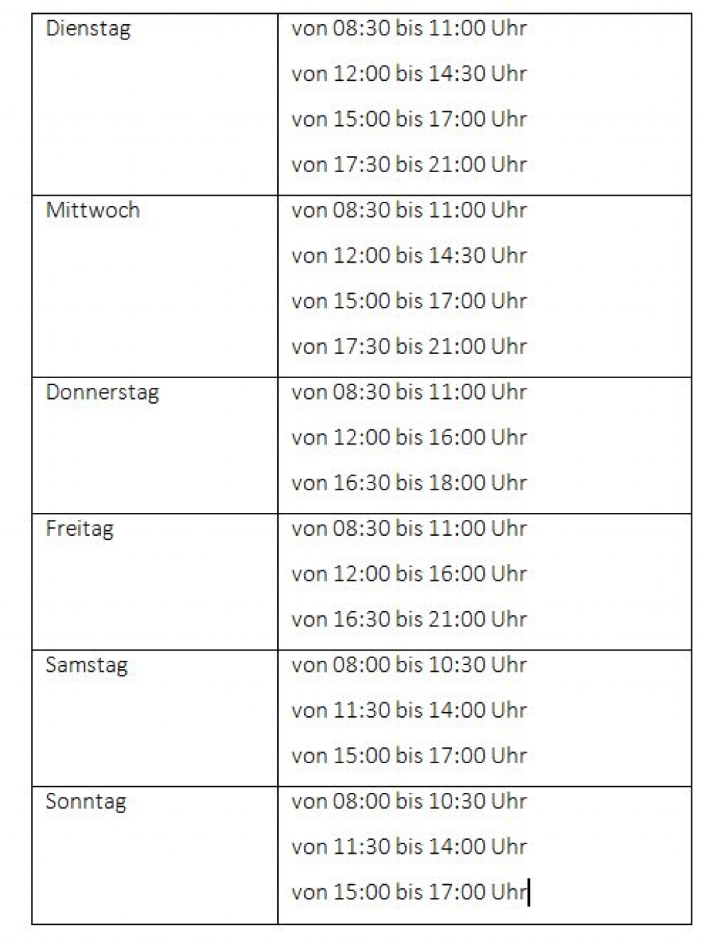 Ab Montag, den 14.09.2020, können die gewünschten Zeitfenster für den Besuch im Hallenbad reserviert werden. Die Reservierung ist online oder telefonisch möglich. Auf der Website der Stadt Eislingen können Besucherinnen und Besucher unter www.eislingen.de/Termine online das gewünschte Zeitfenster buchen. Falls keine Möglichkeit besteht, sich online ein Zeitfenster zu buchen, ist eine Buchung von Montag bis Freitag auch telefonisch unter 07161 / 98453-0 möglich. Personen, die an Kursen oder am Vereinstraining teilnehmen, müssen sich nicht vorab registrieren. Der Ticketverkauf erfolgt weiterhin vor Ort am Kassenautomat. Die Jahreskarten, Zehnerkarten und Debitkarten können direkt vor Ort eingelöst werden. Ab Dienstag, den 15.09.2020 gelten für das Eislinger Hallenbad neue Öffnungszeiten. Untertägige Pausen sind notwendig um die erforderlichen Reinigungsarbeiten durchzuführen. Am Dienstag, Mittwoch, Donnerstag und Freitag findet teilweise Schul- und Vereinsbetrieb statt. Alle Planungen sind vorbehaltlich des weiteren Verlaufs der Corona-Pandemie. Aktuelle Informationen gibt es auf der städtischen Website unter www.eislingen.de/hallenbad. Die Mitarbeiterinnen und Mitarbeiter des Hallenbads freuen sich auf zahlreiche Besucherinnen und Besucher, und bitten um Verständnis für die Einschränkungen.