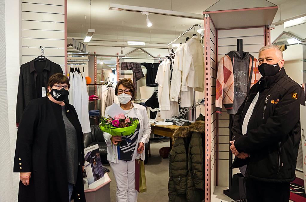 Ein Grund, dass auch die Eislinger Selbstständigen mit Ihrer 1. Vorsitzenden Regina Klaiber, den Vorstandsmitgliedern Dirk Joneleit und Detlev Nitsche zum Jubiläum mit einem Präsent gratulierten, dies natürlich in gebührenden Abstand und mit Masken.