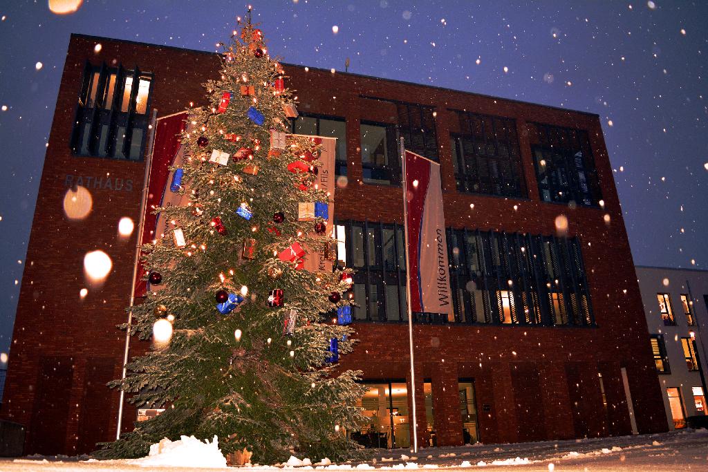 Zum ersten Advent wurde dann nicht nur das erste Licht auf dem Adventskranz, sondern auch die Beleuchtung am Weihnachtsbaum angezündet. Und sogar der erste Schnee des Jahres hat nicht mehr lange auf sich warten lassen, damit der Baum vor dem Rathaus allen eine besondere Adventsfreude bereiten kann.