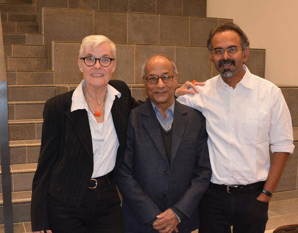 Besuch in Eislingen von Mangalesh Dabral im Jahr 2016 bei einer Lesung im Rathaus (v.l.n.r. Tina Stroheker, Mangalesh Dabral und sein Dolmentscher Divyaraj Amiya)