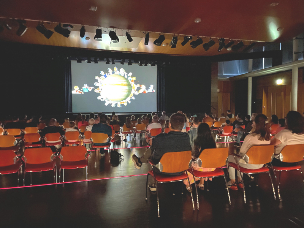 Auf der großen Leinwand der Stadthalle präsentierten Schülerinnen, Schüler und die Lehrkräfte das Ergebnis ihrer Ton- und Videoaufnahmen. Dieses außergewöhnliche Abschlusskonzert kam bei dem Publikum gut an.
