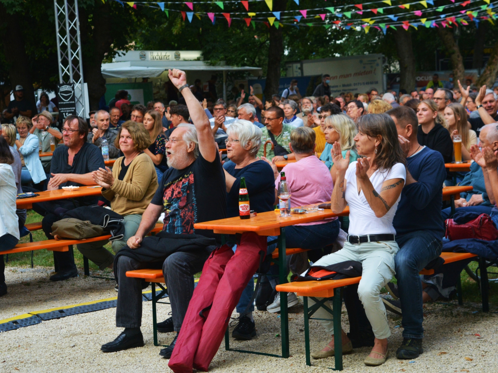 Für volles Haus sorgte auch in dieser Woche wieder der Rock-Abend am Donnerstag. Die Band „The Cosmic Banditos“ brachte die Hits von der britischen Rockband Pink Floyd in den Schlosspark. Für den Original-Sound holten die Musiker alles aus ihren Instrumenten und Stimmen heraus und schickten die Gäste an den Bänken und Stehtischen auf eine Zeitreise durch die vergangene Jahrzehnte bis zurück in die 70er.