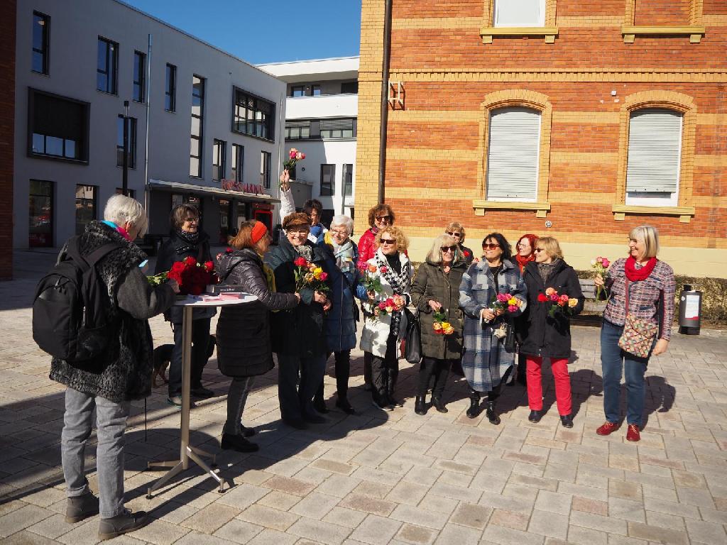 Deshalb gehen am 8. März in aller Welt Frauen auf die Straße, um ihre Rechte einzufordern. Und dieses Jahr ganz besonders, in dem wir verstärkt erfahren, daß für Freiheit und Unversehrtheit gekämpft werden muß. Mit einer Rose versichern Frauen einander ihre Solidarität. Auch in Eislingen.