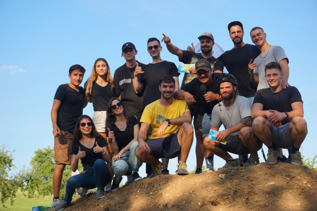 Im Rahmen des internationalen Workcamps, organisiert vom eam der offenen und mobilen Jugendarbeit und des städtischen Kinder- und Jugendbüros (KJB), wurde die Dirt Bike Bahn am Tälesweg wieder in Gemeinschaftsarbeit auf Vordermann gebracht. |