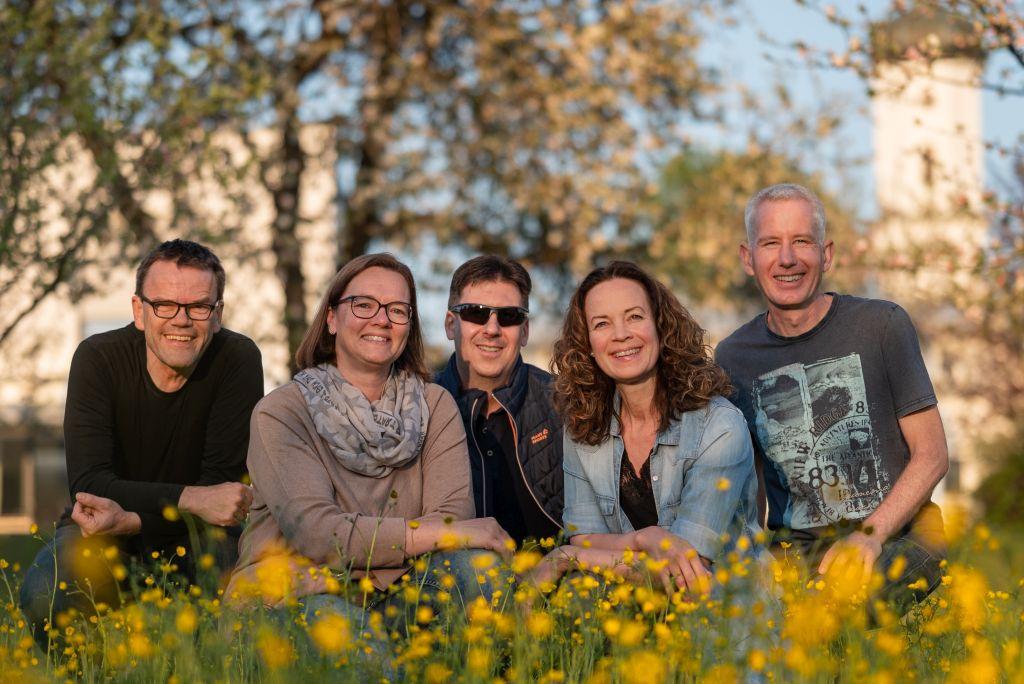Die Band „Schwenglisch“ (v.l.n.r. Thomas Ziller, Melanie Ackermann, Jürgen Schaupp, Marion Stadelmaier, Volker Balinger) sorgen an dem Abend für den richtigen Rhythmus mit teils eigenen Texten und Liedern, die zum Schmunzeln aber auch Nachdenken anregen. ©Michael Stadelmaier