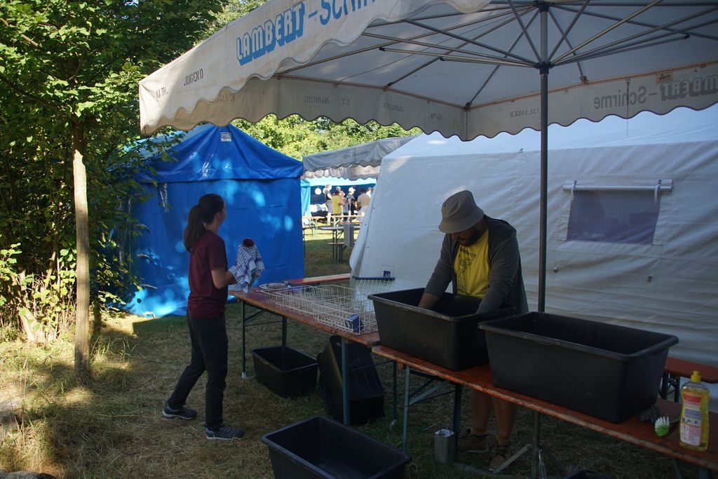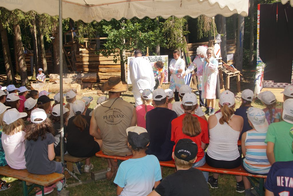 Eine Woche lang waren wieder Kinder im Alter von 6 bis 12 Jahren im Eislinger Täle die Ferientage mit Spielen, Basteln und Bauen zu verbringen. In der magischen Welt verdunkelte sich Tag um Tag nicht nur das Schloß immer mehr, viele Bewohner wie der Eisbär mussten fliehen. |