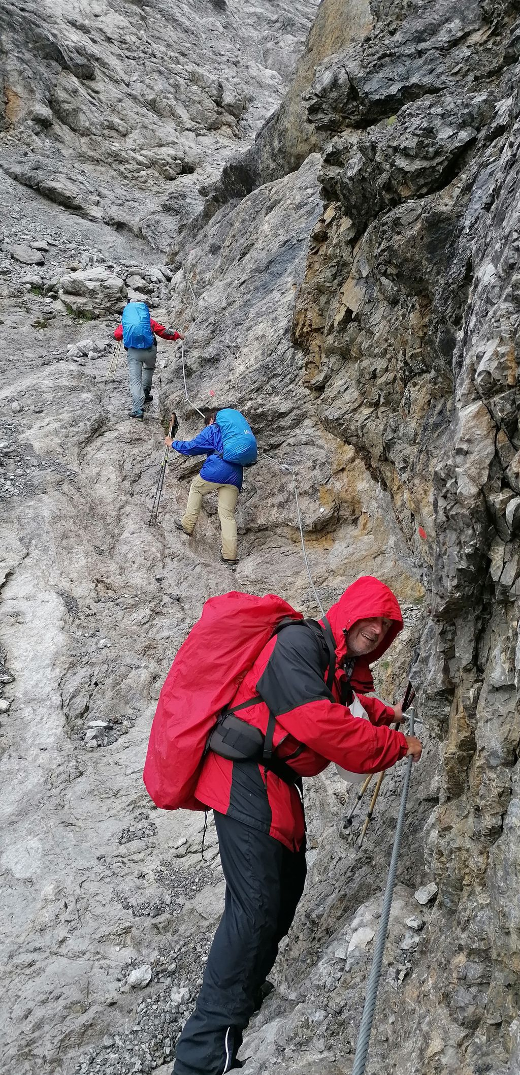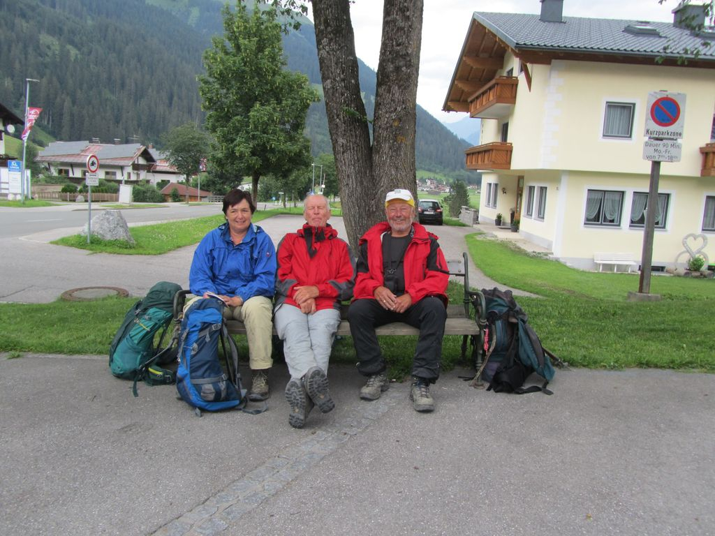Die rund 15 Kilometerlange Hornbachkette mit ihren wilden Gipfeln liegt im nördlichen Lechtal. Von Häselgehr (1003 m ü.N.N.) stieg man bei Dauerregen durch das Hagertal auf. Eine längere Querung vom Wolekleskar und Gliegerkar hinauf zum Griesschartl war noch gut begehbar. Aber die recht ausgesetzte Ostflanke über dem Seekar hatte es trotz der Seilversicherungen in sich. Schritt für Schritt am Drahtseil gesichert wurde die Schwärzerscharte (2500 m) zwischen der Urbeleskar- und Bretterspitze erreicht. Von dem als überwältigtem beschriebenen Panorama war trotz dem nachlassenden Regen kaum was zu sehen. So verzichtete man notgedrungen auf die letzten 100 Höhenmeter und Rolf erklärte die Schwärzerscharte zum Gipfel. Über ausgedehnte Schuttfelder und felsiges Gelände verlief der Abstieg zum Kaufbeuer Haus (2007) und weiter hinab nach Hinterhornbach (1101) ins Quartier. Nach 4 Stunden Regen, runden 1600 Höhenmeter und 11 ½ Stunden unterwegs war das Tagesziel erreicht. Anderntags, bei gutem Wetter, führten steile, meist nordseitige Hänge und endlos scheinende Wege mit zahlreichen Gegenanstiegen hinauf zur Schöneggerscharte (2248). Teilweise auf dem Enzensberger Weg endete die mittelschwierige Tour mit einigen drahtseil gesicherten Passagen auf der Hermann von Barth Hütte. Mit 2131 m ist sie die höchstgelegene Schutzhütte in den Allgäuer Alpen. Runde 8 ½ Stunden, ohne Regen, aber mit runden 1500 Höhenmeter hatte es auch dieser Tag in sich. Am dritten Tag folgte der Abstieg im Zick Zack hinab ins Bernhardstal nach Elbigenalp, der Heimat der „Geierwally“. Mit dem Postbus fuhr man zurück nach Häselgehr.