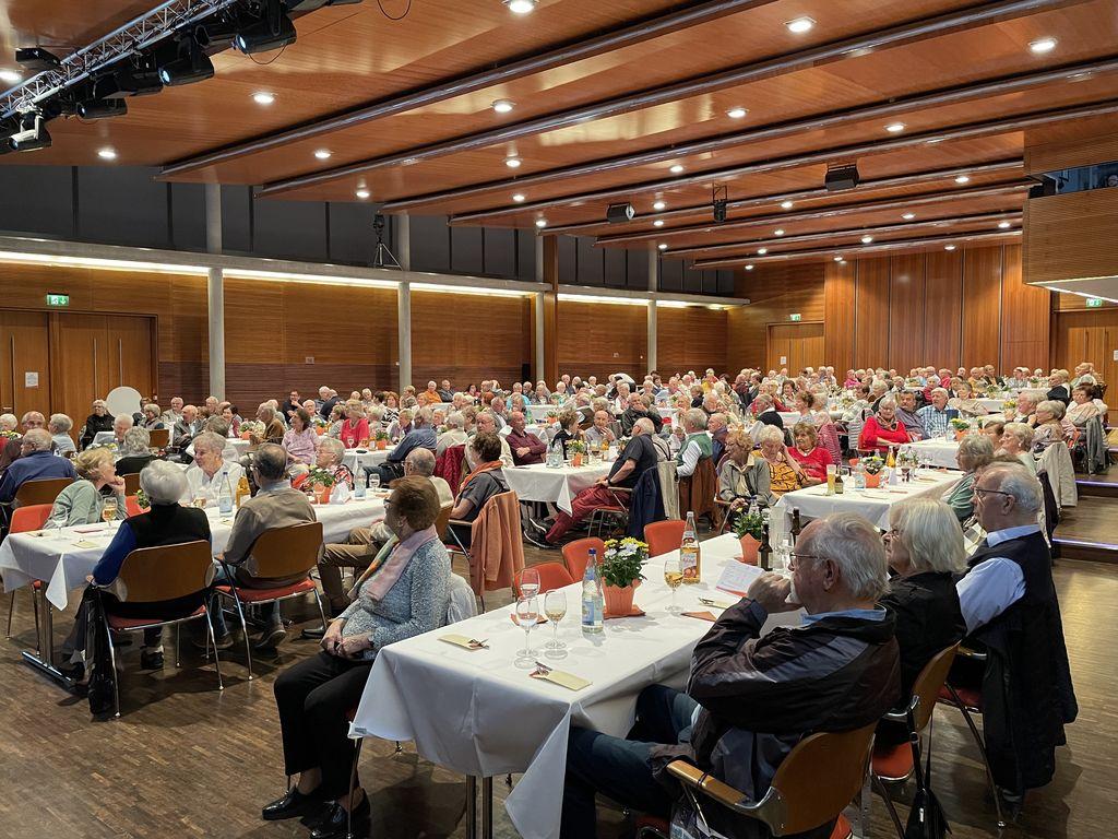 In der feierlich eingedeckten Stadthalle genossen die Seniorinnen und Senioren einen kurzweiligen geselligen Nachmittag
