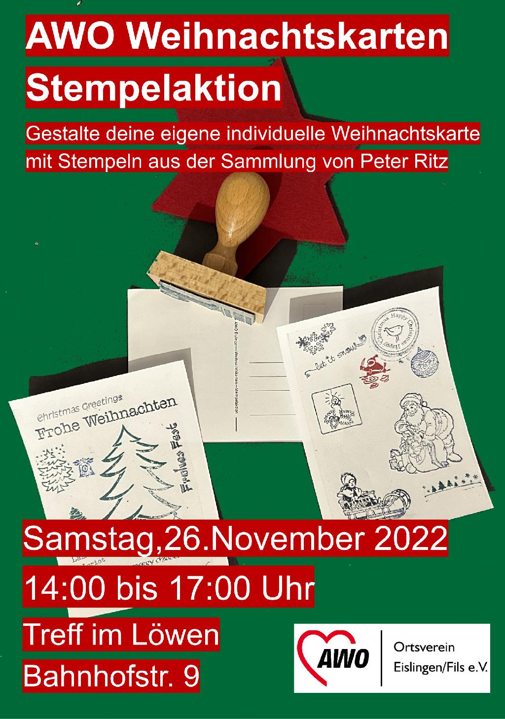 Gestalte deine persönliche Weihnachtskarte! AWO Weihnachtskarten-Stempelaktion mit Stempeln der Sammlung von Peter Ritz 24.11.2022 - PM AWO