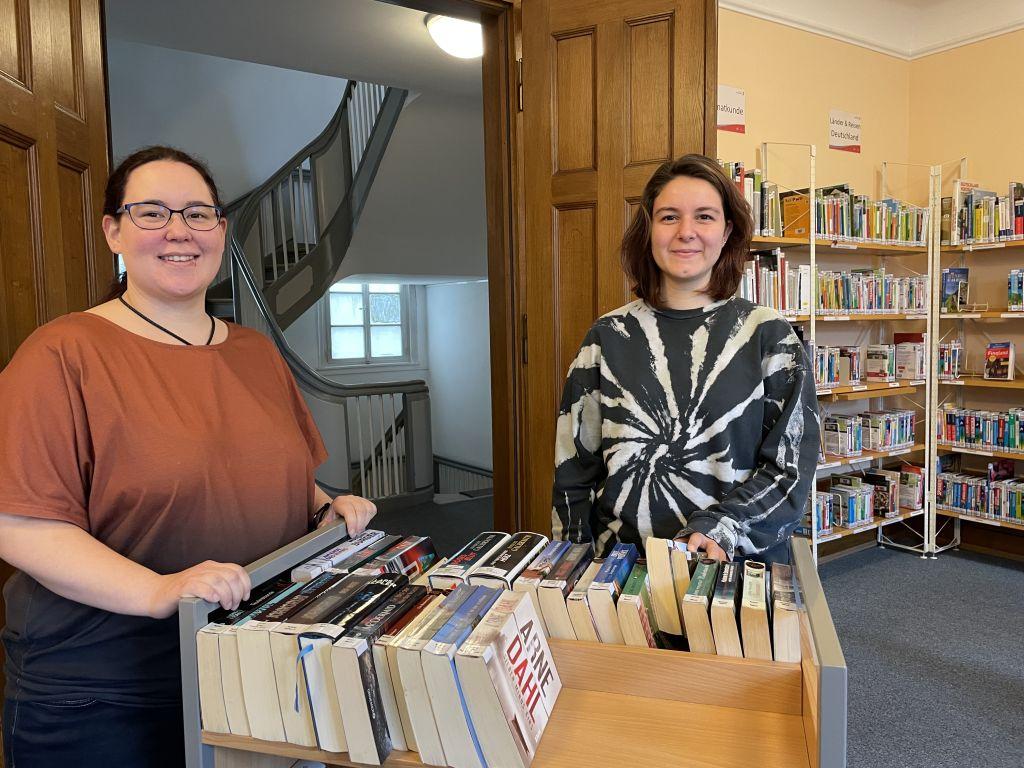 Mit Nadine Kress (l.) und Katharina Vetter (r.) ist das Team der Stadtbücherei im Schloss komplett.