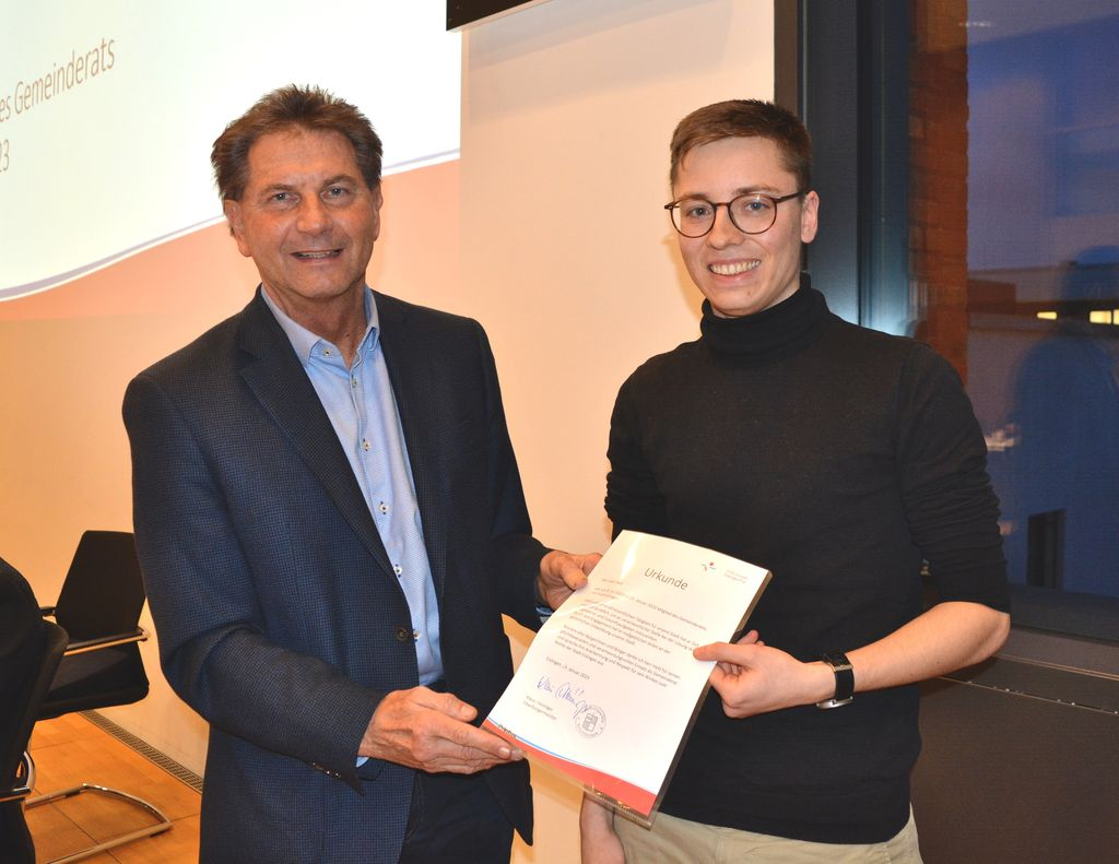 Stadtrat Leon Held (SPD) wurde wegen seines anstehenden Auslandsaufenthalts bei der letzten Gemeinderatssitzung verabschiedet. Oberbürgermeister Klaus Heininger würdigte sein Wirken im Gremium und setzte Jens Kocher als Nachfolger ein.