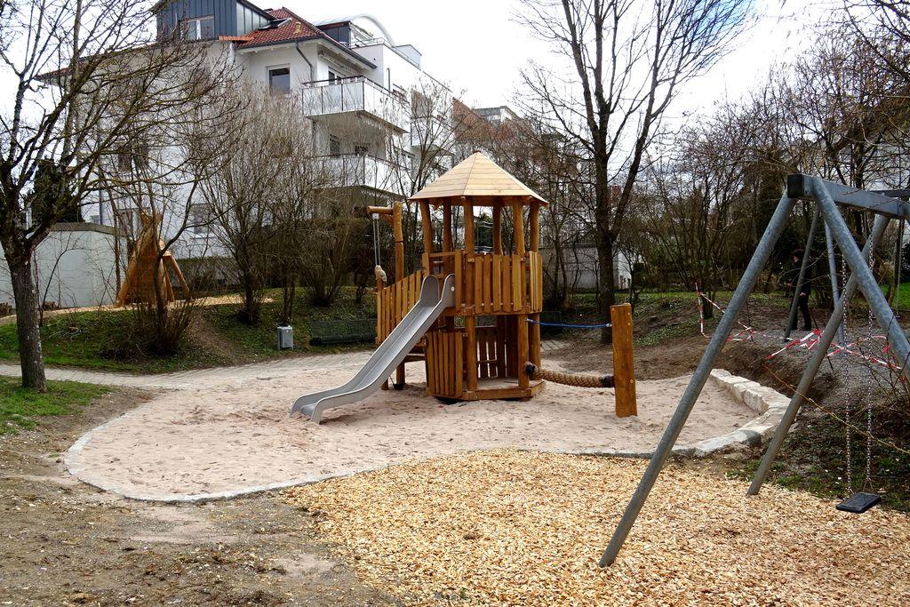 Der Spielplatz am Fußweg zwischen der Kolping- und der Kettelerstraße ist umgestaltet. Die neuen Spielgeräte sind aufgestellt und können nun von den Kindern erobert werden.