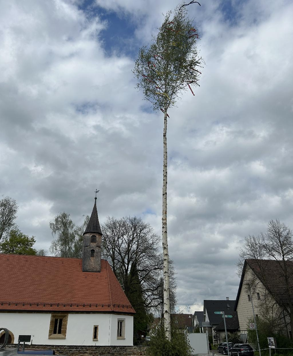 Der traditionelle krummwäldener Maibaum steht wieder am Platz vor der Jakobskapelle. Dieses Jahr haben die Organisatoren eine stattliche Birke als Symbol für den Wonnemonat Mai geschmückt und aufgestellt. Schön dass diese Tradition gepflegt wird. |