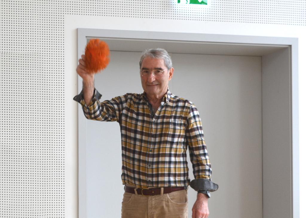 Alois Maier (rechts im Bild) leitet die Gruppe mit viel Witz, Engagement und Herzblut. Zwischendurch kommen Bälle und andere Hilfsmittel zur Verbesserung der Koordination zum Einsatz.