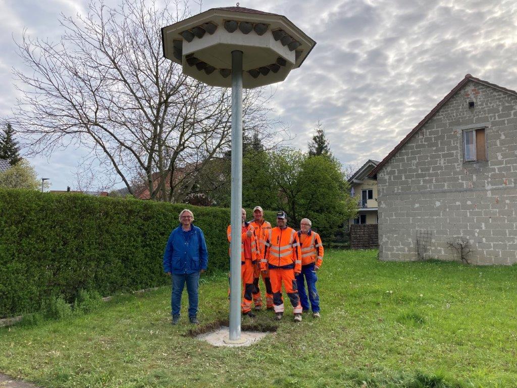 Rechtzeitig zur Rückkehr der Mehlschwalben aus dem afrikanischen Winterquartier hat der städtische Bauhof das Schwalbenhaus auf einer bereitgestellten Fläche in der Bachstraße aufgestellt. Die Stadt Eislingen hat die Anschaffung des Schwalbenhauses durch das städtische Umweltförderprogramm ermöglicht.