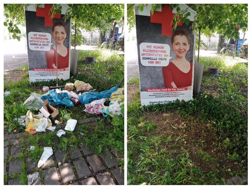 Vorher - Nachher: Ein Müllschwerpunkt war ein Altkleidercontainer