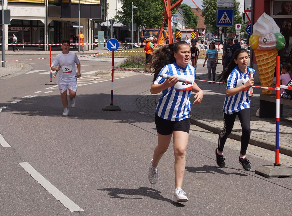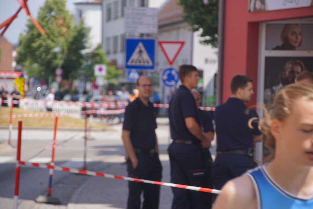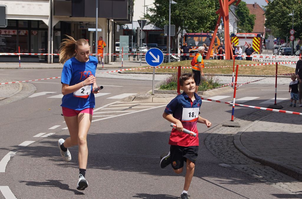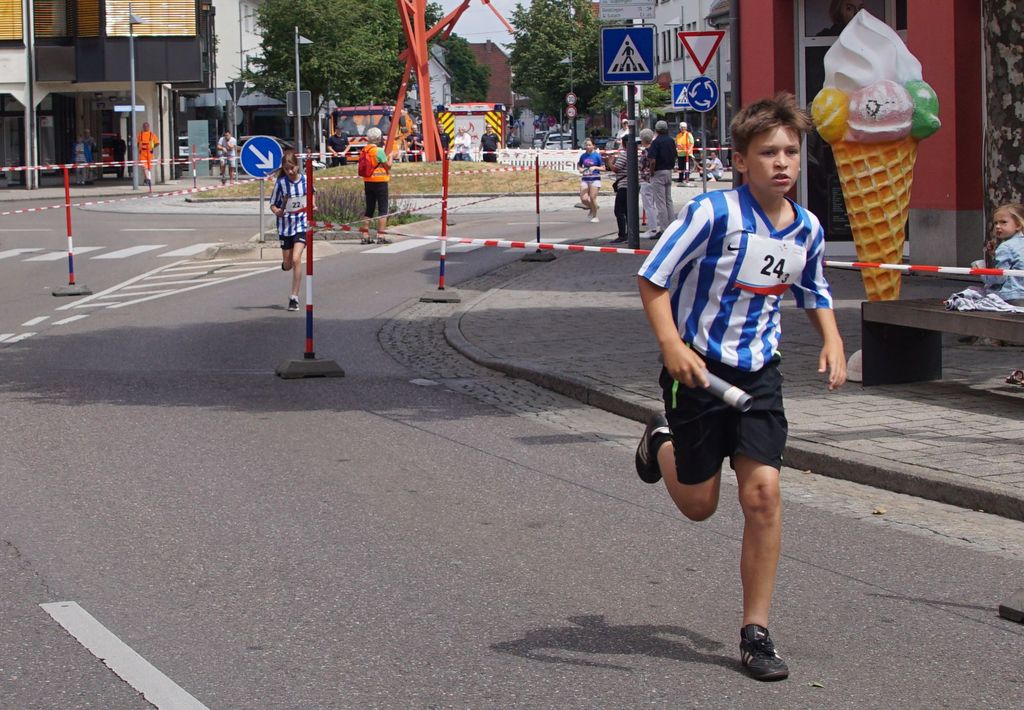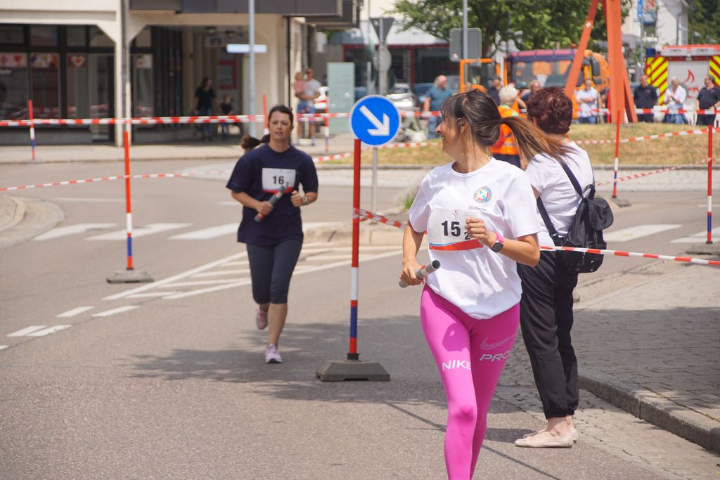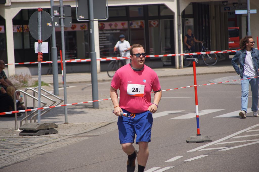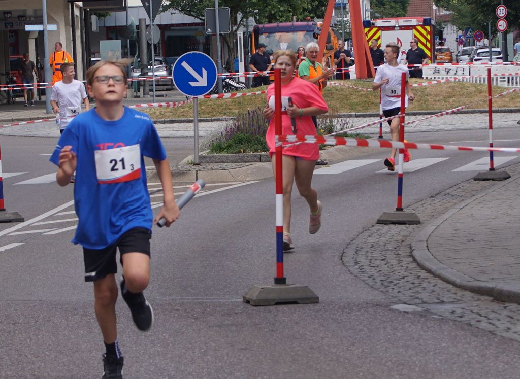 Zum ersten Mal stand beim diesjährigen Stadtfest ein sportlicher Wettbewerb auf dem Programm. Rund um die Innenstadtkreisel galt es in Viererteams einen Rundkurs von jeweils 600 m zu bewältigen. Schnappschuß beim Warmlaufen |