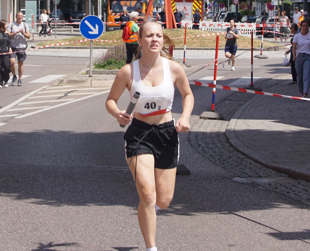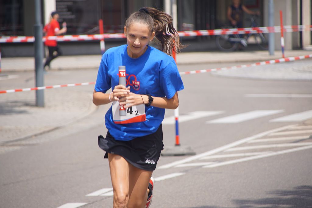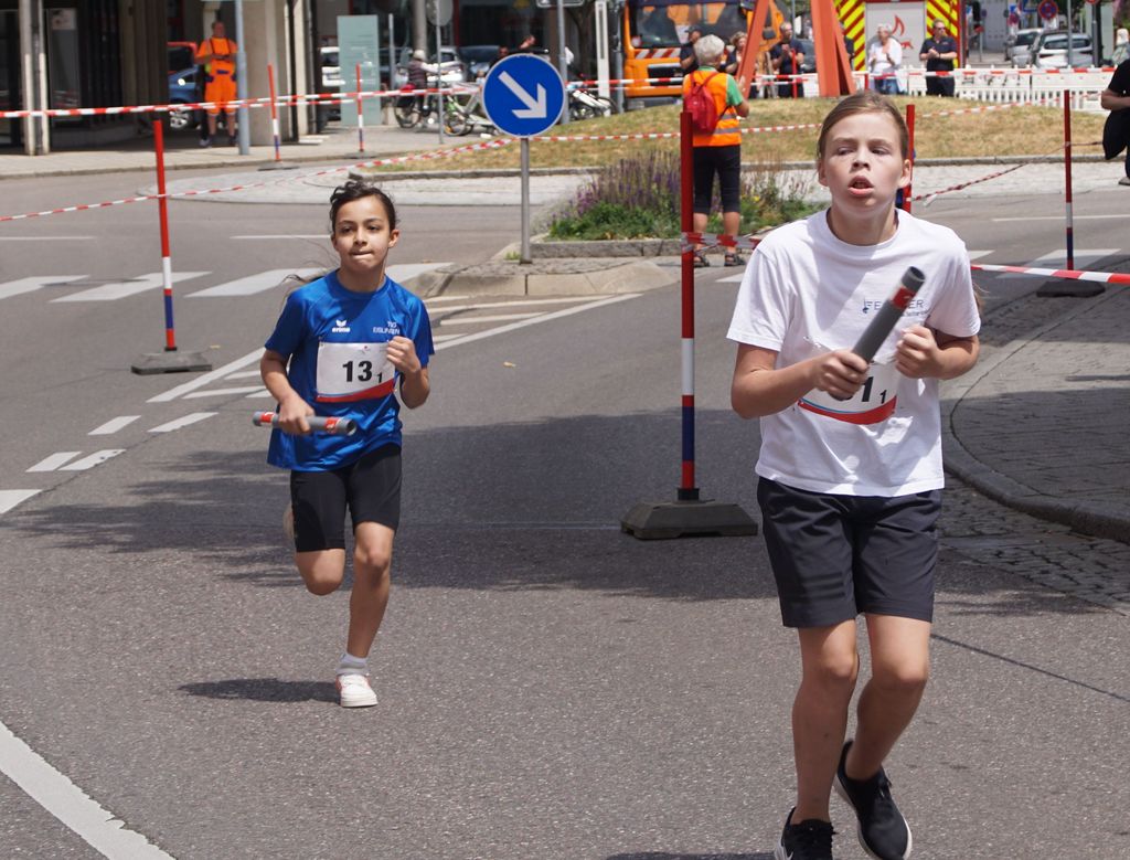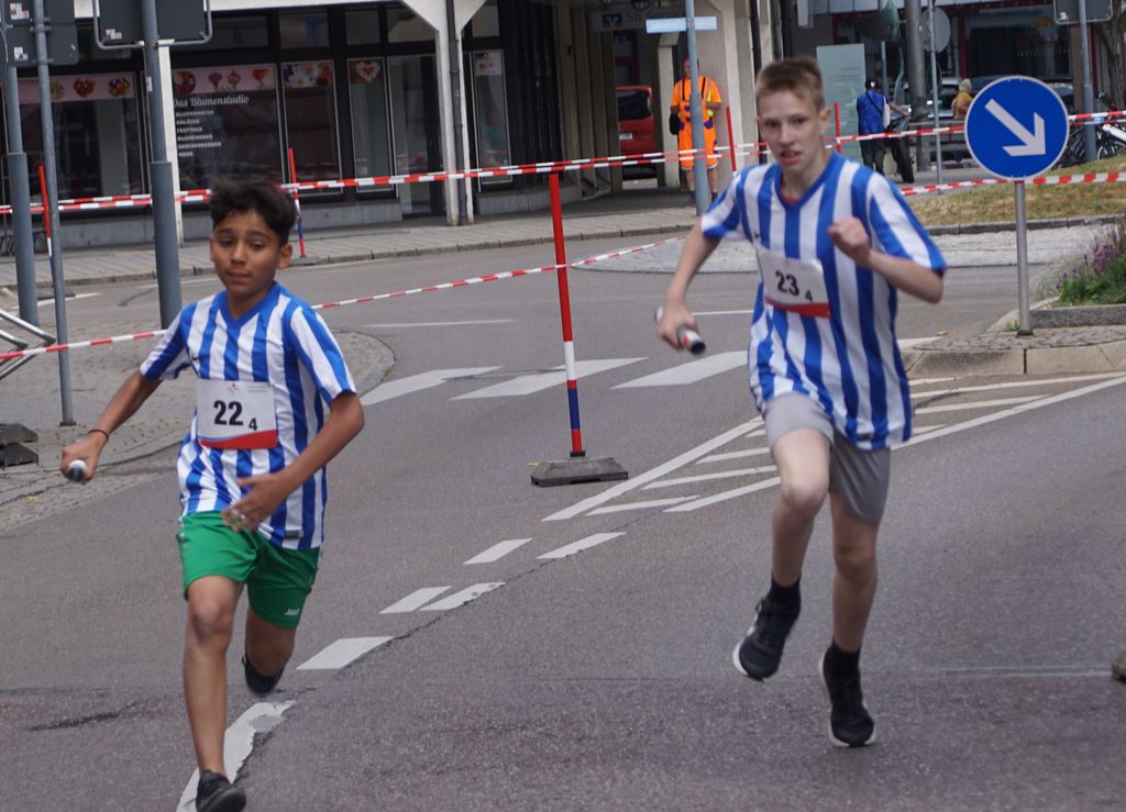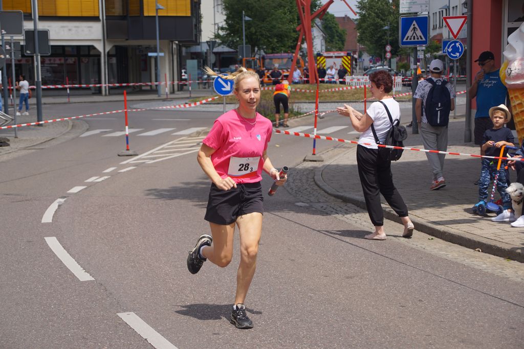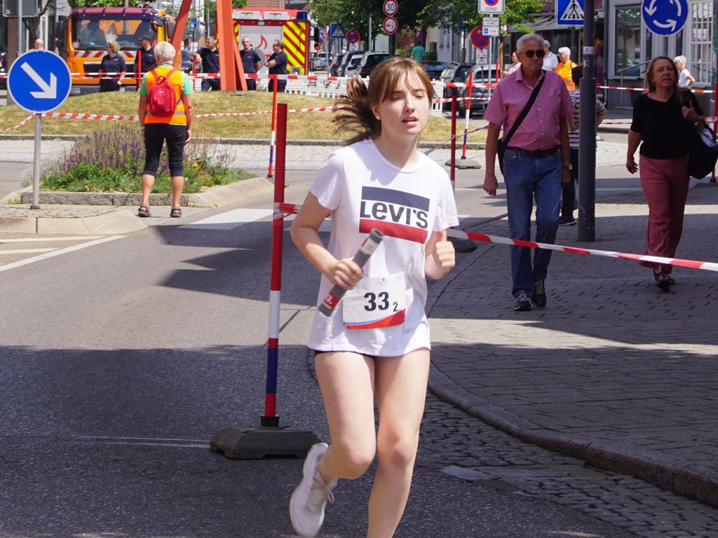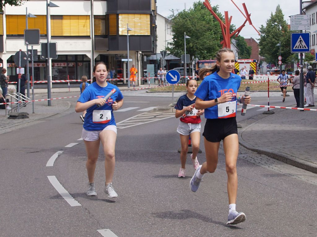 Zum ersten Mal stand beim diesjährigen Stadtfest ein sportlicher Wettbewerb auf dem Programm. Rund um die Innenstadtkreisel galt es in Viererteams einen Rundkurs von jeweils 600 m zu bewältigen. Schnappschuß beim Warmlaufen |
