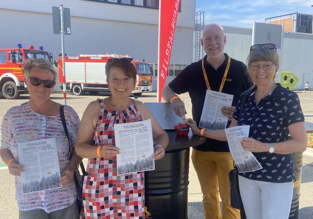 Zum Familientag der Continental Eislingen am Samstag, 15.07.2023, hatte sich das Unternehmen etwas Pfiffiges einfallen lassen. Passend zum Konzept der Nachhaltigkeit des Betriebs konnten Besucher:innen ein Baum-Zertifikat für eine Baumpatenschaft des Vereins „Filstalbuaba“ erwerben. Von jeder übernommenen Baumpatenschaft geht zudem eine Spende an das Kinder- und Jugendhospiz der Malteser nach Faurndau.
