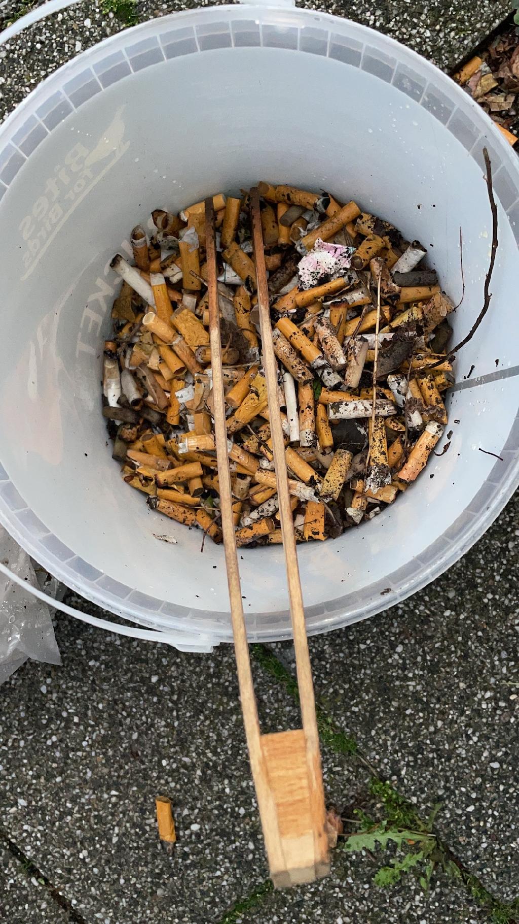 Hauptaugenmerk am Samstag lag auf den achtlos weggeworfenen Kippen in Grünanlagen, auf den Plätzen und an den Sitzgelegenheiten. Allein unser 13-jähriger sehr engagierter Müllsammler Samuel sammelte über 600 Kippen in gut einer Stunde!