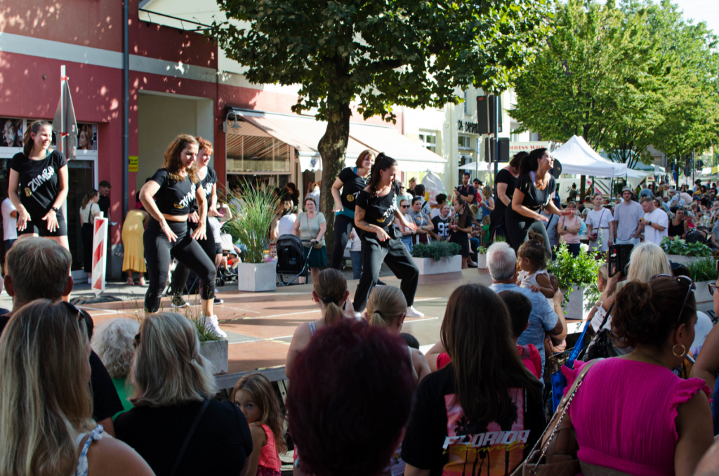 Auf der Aktionsbühne wechselten sich Modenschauen der Eislinger Modehäusern mit sportlichen Darbietungen von Vereinen und Fitnesstudios ab.Moderiert wurde das Programm von Oliver Marzian.
