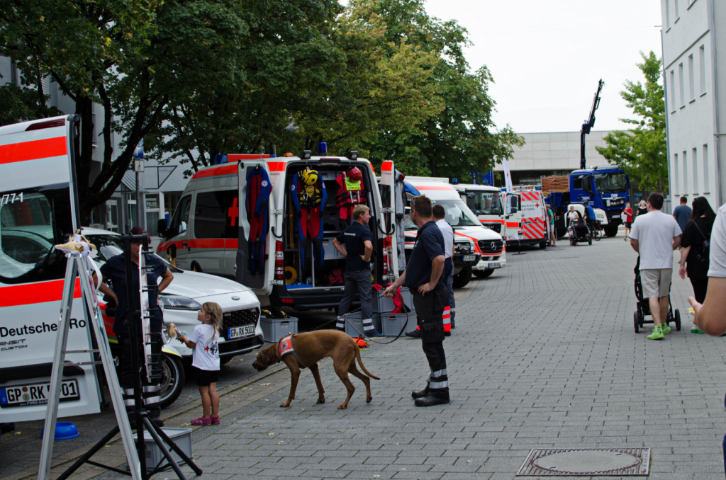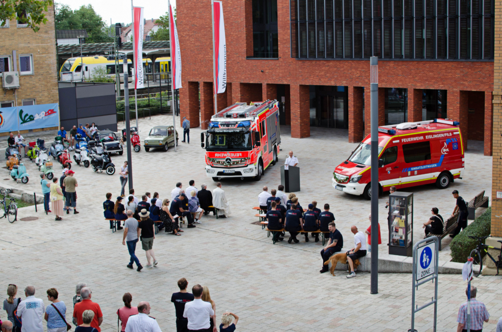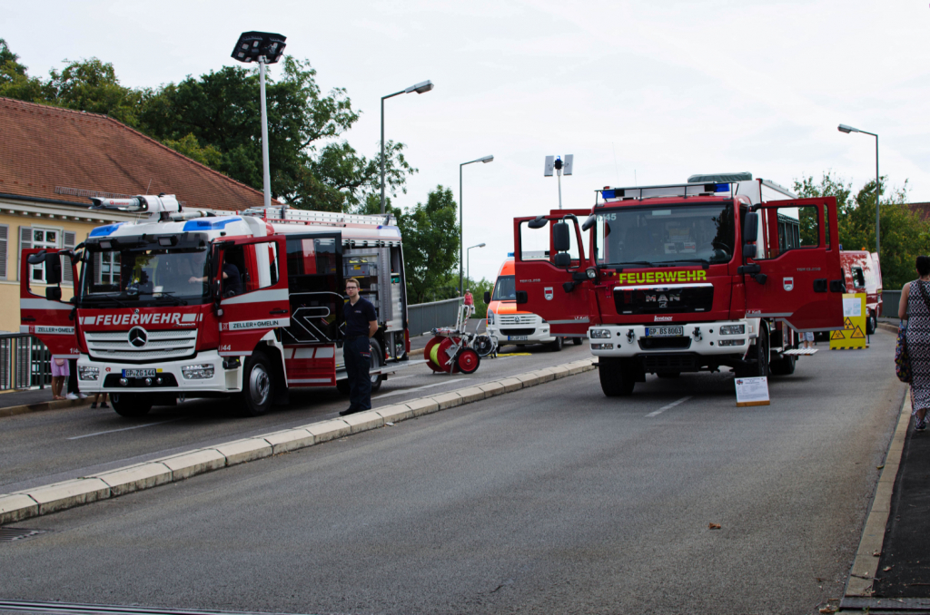 Neben dem Programm auf der Aktionsbühne war auch die Präsentation der Eislinger Feuerwehr ein Anziehungspunkt des Tages. Sowohl Feuerwehrfahrzeuge aus Eislingen, als auch Spezialfahrzeuge aus dem Umland und Fahrzeuge des DRK waren auf dem Kronenplatz und auf der Brücke der Nord-Südverbindung zu bestaunen.