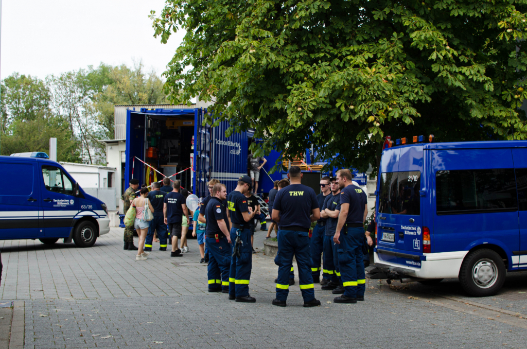 Vor der Stadthalle hatte das THW Stellung mit ihrer Ausrüstung Stellung bezogen.
