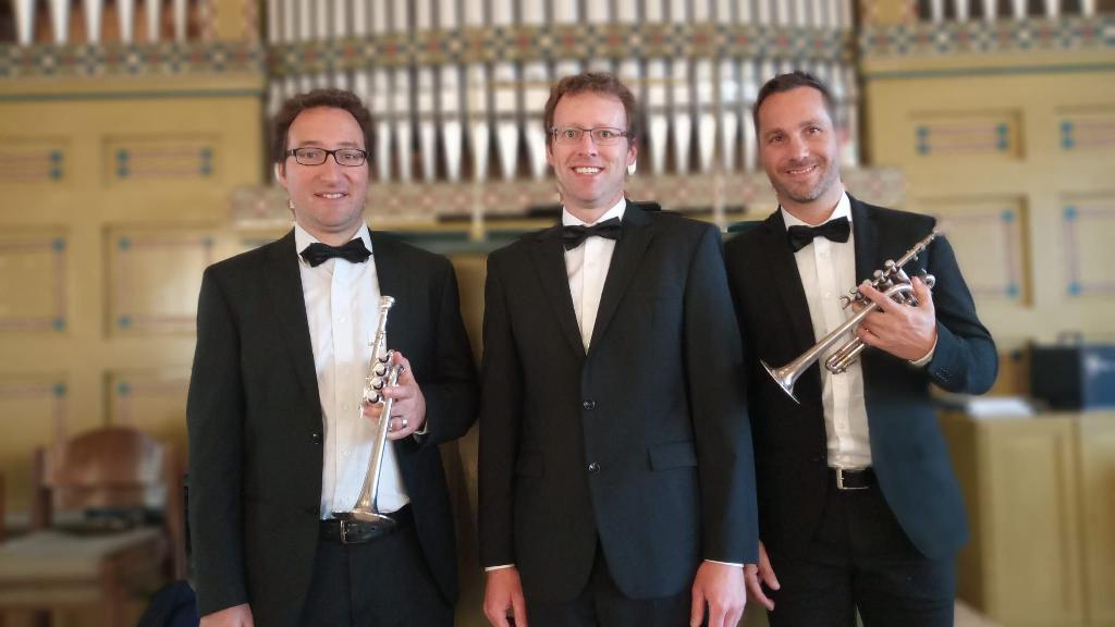 Vergangenen Sonntag, den 8. Oktober 2023, konnte eine stattliche Zuhörerschaft in der Eislinger Christuskirche königliche Klänge genießen. Kirchengemeinderätin Ingrid Sing begrüßte das wiederum zu Besuch gekommene „Trio Toccata“ herzlich. Das Trio besteht aus den Künstlern Patrick Brugger (Organist am Münster zu Salem am Bodensee, Florian Keller (aus Langenargen, ebenfalls vom Schwäbischen Meer) sowie Daniel Bucher (aus Kirchheim Teck). Alle drei Musiker wirken auch pädagogisch. Gleich anfangs ließen die drei „Trio-Toccata-Musikvirtuosen“ fünf abwechslungsreiche Sätze vom englischen Renaissance-Komponisten Giles Farnaby (1563-1640) erklingen. Diese sind betitelt „Fancies, Toyes and Dreames“ also „Heitere, träumerische Stücke“. In den verschiedenen, u.a. tänzerischen Sätzen z.B. „The old Spagnoletta“ sowie „Tell me Daphne“ waren schon unterschiedliche Trompeten-instrumente (Piccolotrompeten, Corni da Caccia – Jagdhörner und Flügelhörner) in stattlicher und „klanglicher Bandbreite“ zu hören.