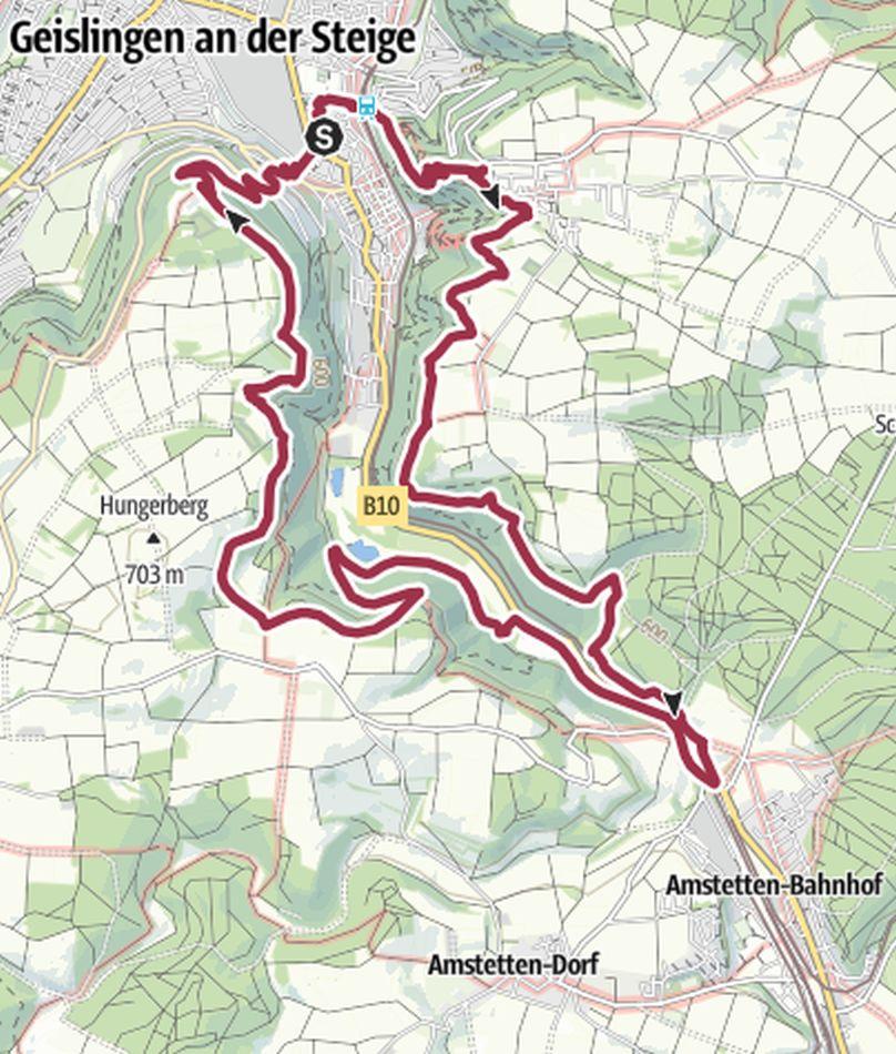 Start und Ziel –P-Platz an der Jahnhalle in Geislingen/St.