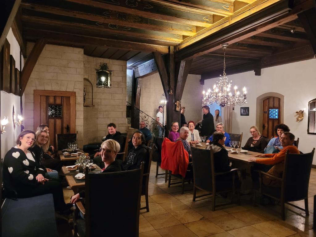 Nach einer kurzen Kaffeepause zeigte auch Petrus ein Einsehen und wir spazierten hoch zur Burg. Dort wurden wir auch schon im „Trödler zur Burgschenke“ erwartet. Bei leckerem Essen und lustigen Tischgesprächen ließen wir den Tag ausklingen und wurden dann noch mit einem wunderschönen Abendhimmel über der alten Reichsstadt Esslingen belohnt.
