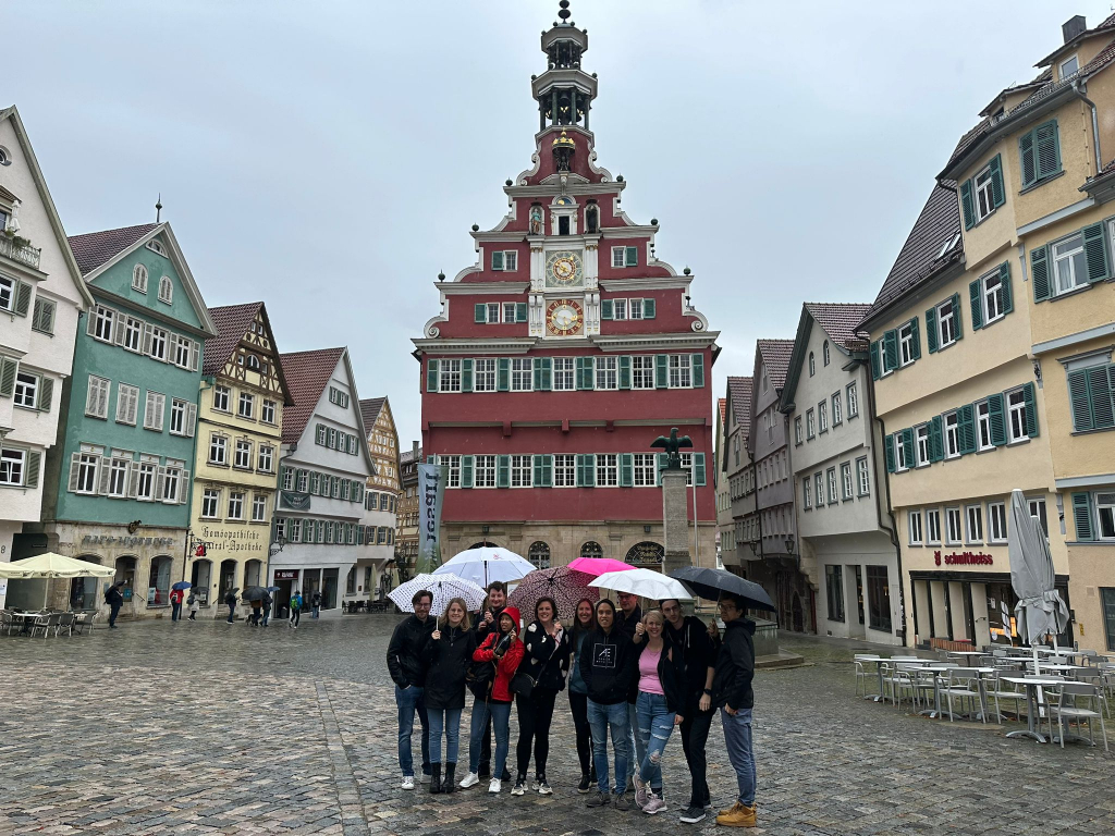 Um 14 Uhr stand dann Kultur auf dem Programm. Ausgerüstet mit Regenjacken und Schirm trotzten wir dem Wetter und gingen mit unserer Stadtführerin auf einen Rundgang durch die Esslinger Altstadt. Sympathisch und mit großem Wissen erklärte sie uns Fachwerkfassaden, Brücken und Plätze und ließ so die lange Geschichte dieser schönen, mittelalterlichen Stadt lebendig werden.