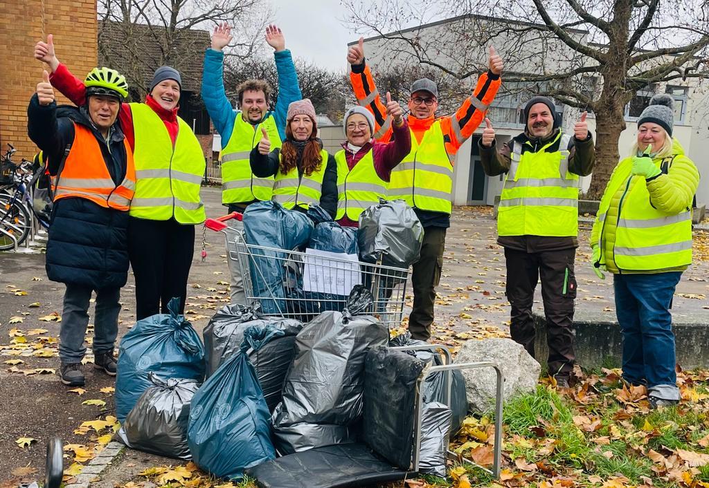 Besonders gefreut haben wir uns über die spontane Mithilfe von 2 nur achtjährigen Jungen. Bei ihrem knapp 45-minütigem Einsatz hat jeder von ihnen eine ganzen Eimer voll Müll gesammelt. Beide hatten uns schon am Nachhaltigkeitstag im Oktober am Rathausplatz besucht.