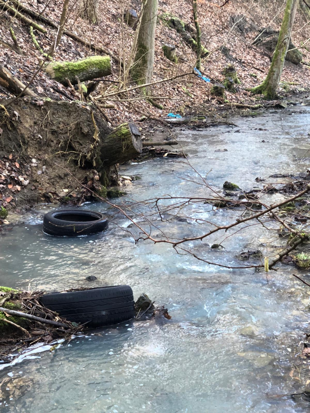 Schockierend für das Cleanup-Team war einmal mehr die gezielte und illegale Entsorgung großer Müllteile in die Natur. So befreiten zwei sportliche Ehrenamtliche das wunderschöne Bachbett des Ziegelbachs von mehreren Autoreifen, einem Schreibtischstuhl, einer Dachrinne, Plastiksäcken, Metallschrott und einigem mehr.
