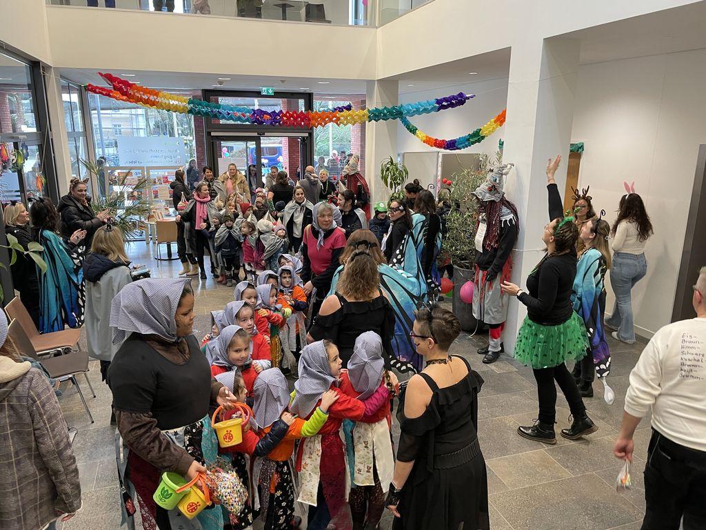 Kindergartenkinder entführen mit Polonaise die Mitarbeitenden das Rathauses