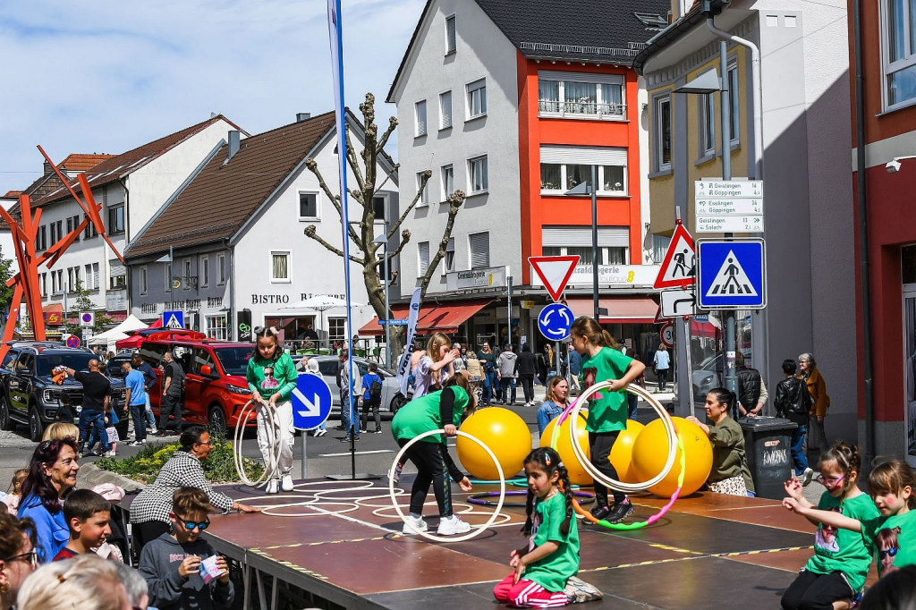 Viel Interesse weckte die Vorführungen auf der Aktionsbühne in der Hauptstrasse, auf der Modenschauen und Vorführungen der Vereine präsentiert wurden, begleitet vom Duo Loogisch und moderiert von Oliver Marzian. Für die musikalische Begleitung sorgten Chris Reiser & Friends.