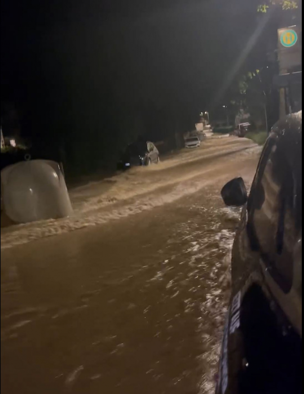 Der Ziegelbach hat sich über die Ziegelbachstraße in die Hauptstraße ergossen und die Krumm hat ihr Bett verlassen und die Wassermassen suchten ihre Wege in den anliegenden Straßen, wie der Weingartenstraße.