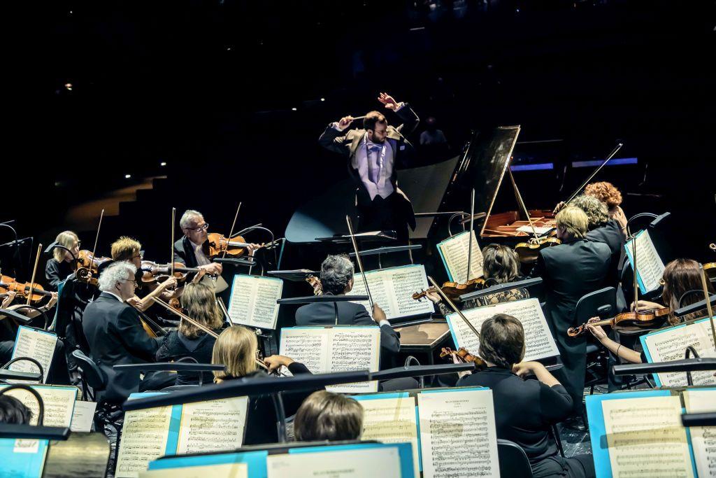 GMD Felix Bender dirigiert das Philharmonische Orchester der Stadt Ulm am 11.01.2024 in der Eislinger Stadthalle. © Marc Lontzek