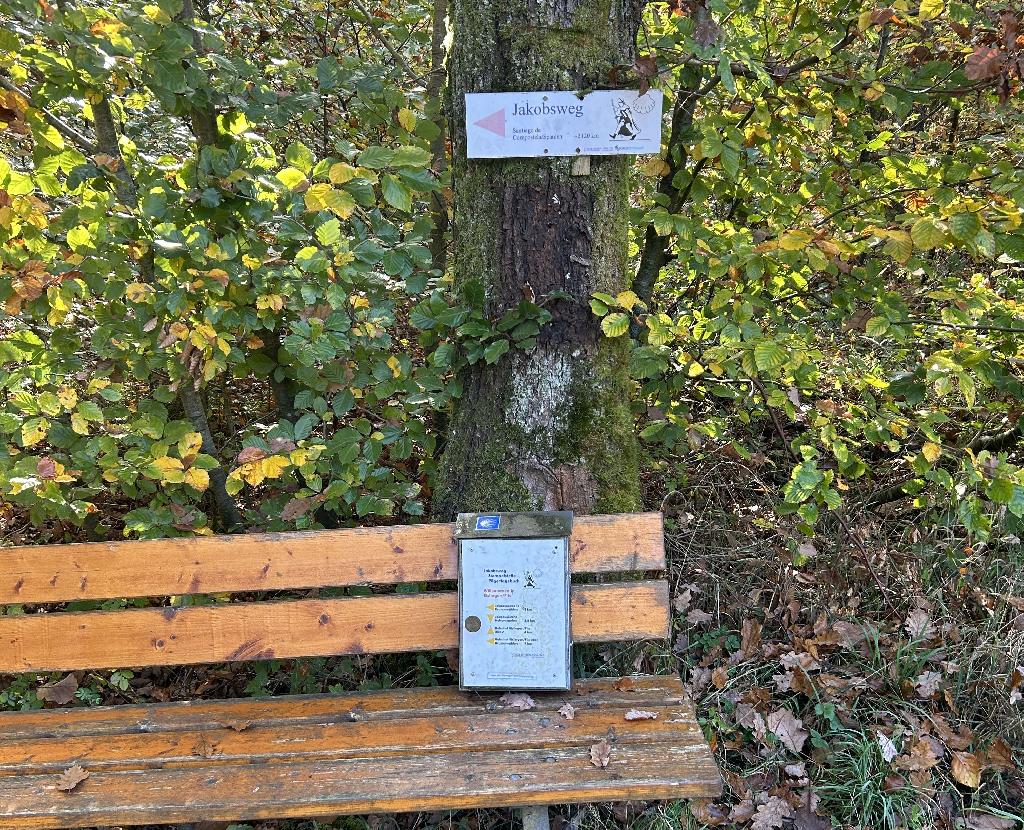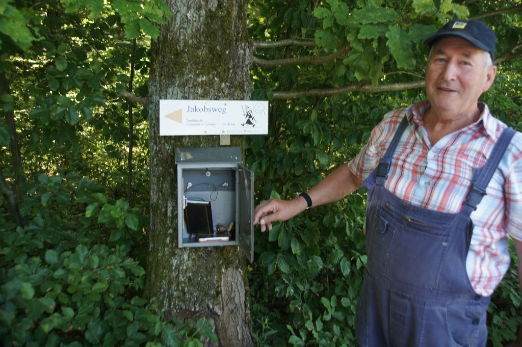 Stempelstelle am Jakobsweg wieder am richtigen Platz Nach 11 Jahren war eine neue Befestigung notwendig 11.11.2024 - Hans-Ulrich Weidmann