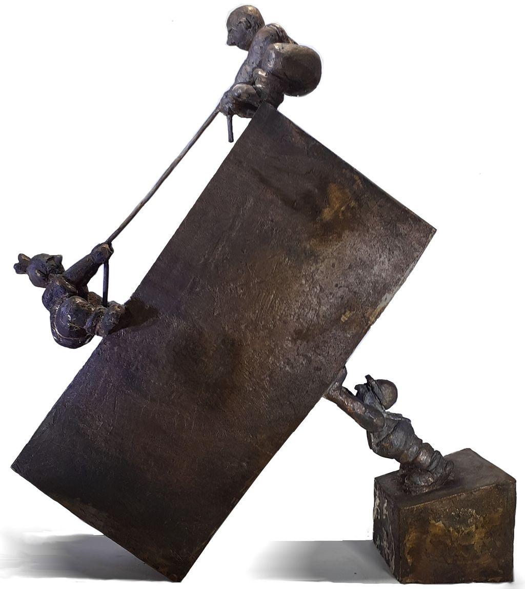 „Aufstieg VIII“ heißt eine kleinformatige Bronzeplastik, die Andreas Futter in Eislingen ausstellt. ©Sven Falk