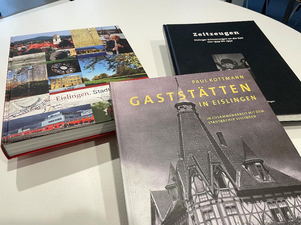 Im Buch ‚Zeitzeugen – Eislinger Erinnerungen an die Zeit von 1939 bis 1950‘erzählen Menschen aus Eislingen ihre Erlebnisse während der schweren Kriegsjahre. Das Werk ist zum Preis von 15,00 Euro erhältlich. Das neueste Buch ‚Gaststätten in Eislingen‘ beleuchtet auf über 300 Seiten die Geschichte von 87 Wirtshäusern, die einst das gesellschaftliche und soziale Leben der Stadt prägten. Das Buch ist zum Preis von 25,00 Euro erhältlich.